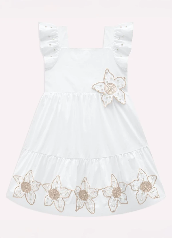 Milon - Vestido Infantil Menina com Pérolas Branco