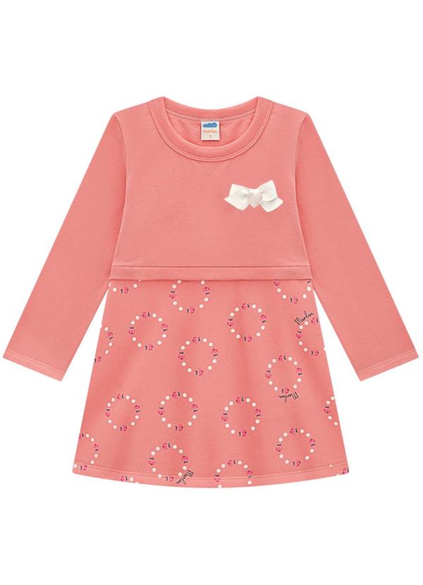 Marlan - Vestido Infantil Moletom Poá Joaninhas Rosa
