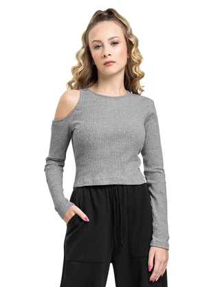 Blusa Cropped em Ribana Canelada Cinza