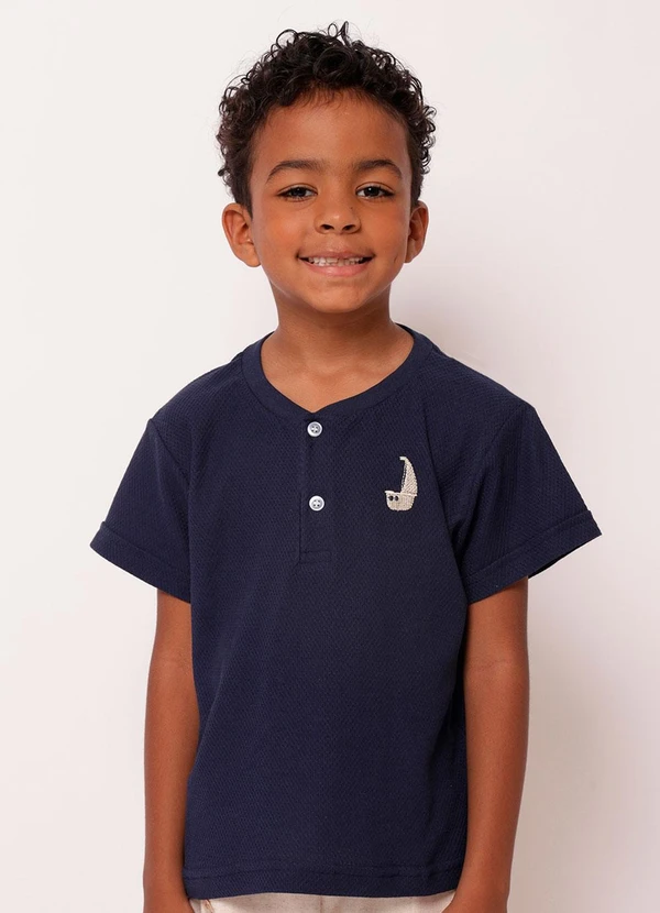 Torra - Camiseta Infantil Texturizado com Botões Marinho