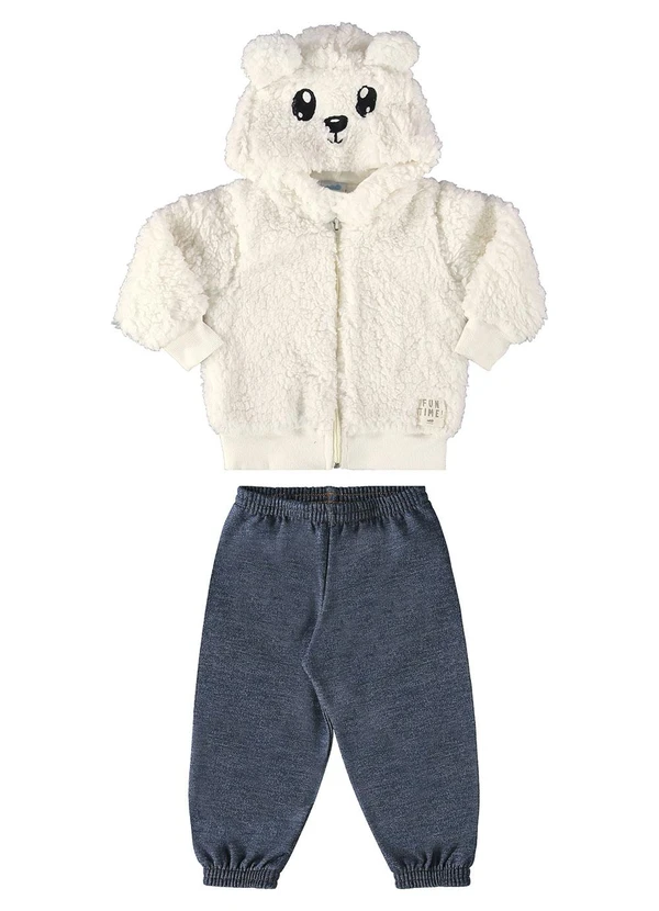 Marlan - Conjunto Bebê Jaqueta e Calça Moletom Jeans Bege