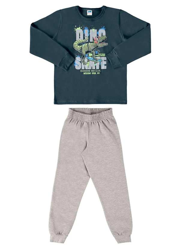 Marlan - Conjunto Blusão e Calça Moletom Dino Skate Cinza