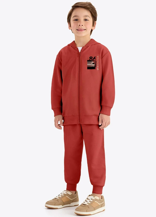 Rovi Kids - Conjunto Jaqueta com Capuz e Calça Laranja