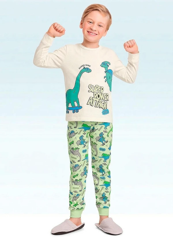 Fakini Kids - Conjunto Pijama Camiseta e Calça Bege