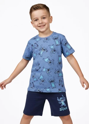 Conjunto Infantil Curto Stitch Azul