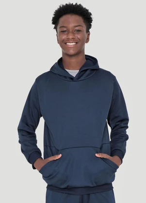 Blusão Juvenil com Capuz Helanca Marinho