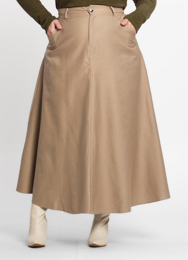 Select - Saia Feminina Midi Godê Sarja com Bolso Bege