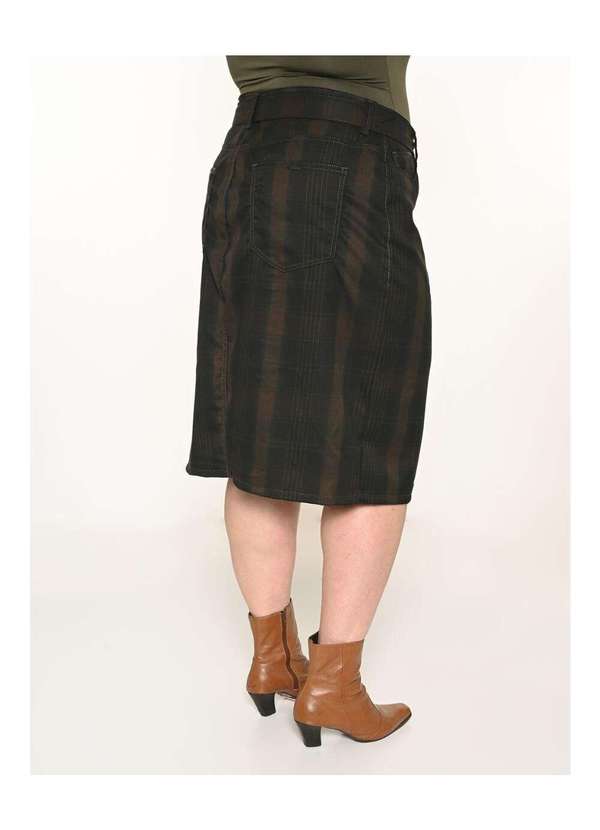 Saia Feminina Midi Plus Xadrez com bolso funcional, recorte frontal e cinto fivela meia argola - 63,3% Poliester 29,6%Viscose 2,1% Elastano GRADE 2- 2- 2- 1-.
