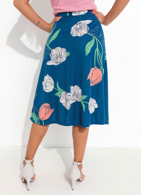 Outlet - Saia Floral Azul com Bolsos