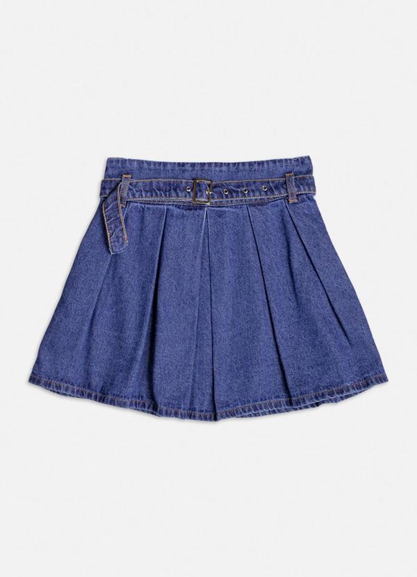 Authoria - Saia Jeans com Pregas e Fivela Azul