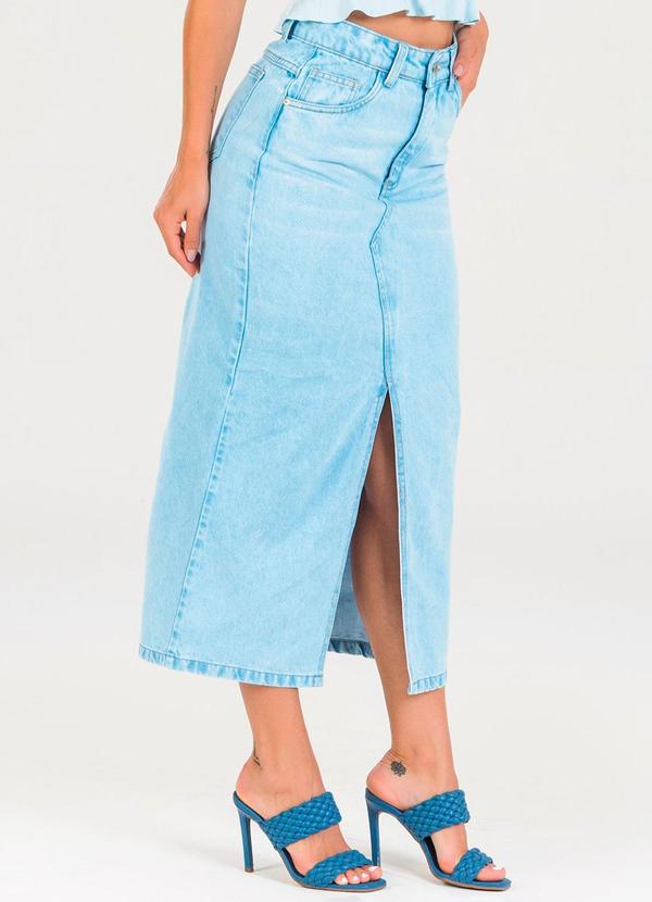 Meu Jeans - Saia Jeans Midi Aura Jeans Claro Azul