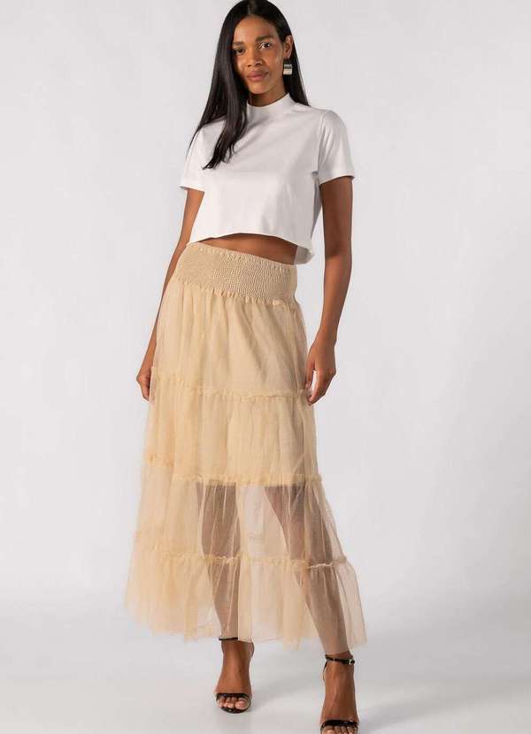 Lamis - Saia Longa de Tule Cos com Lastex Bege