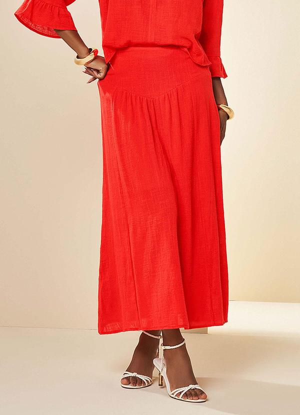 Doce Trama - Saia Longa Nature em Linho Vermelho
