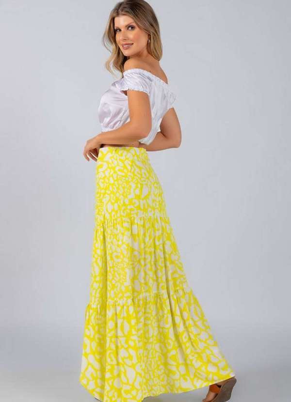 Lamis - Saia Longa Viscose Estampa Animal Print Verde