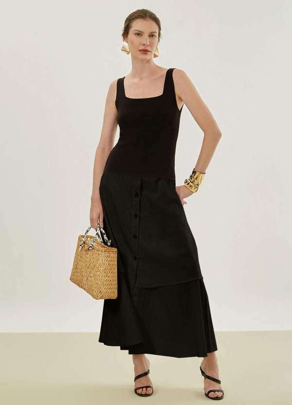 Maria.valentina - Saia Maria.Valentina Evasê Alta Longa Preto Preto