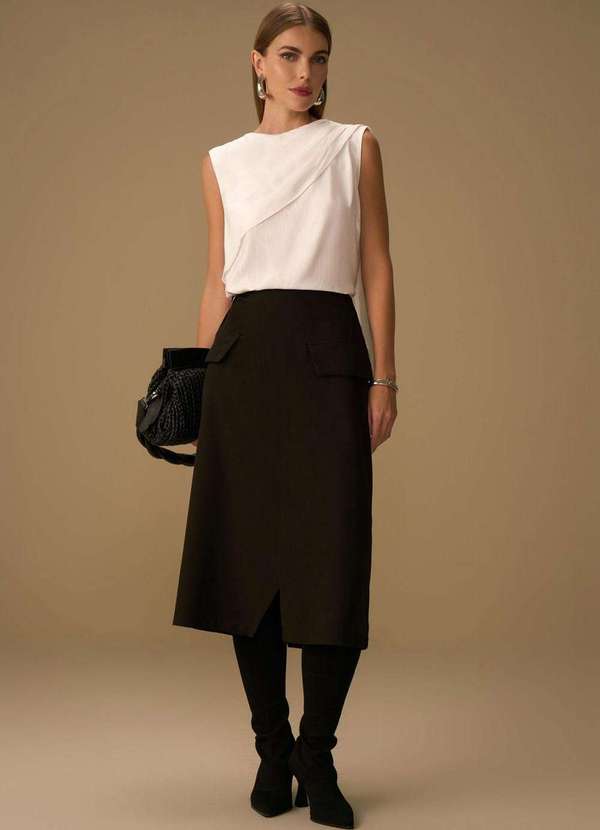 Maria.valentina - Saia Maria.Valentina Evasê Alta Midi Preto Preto
