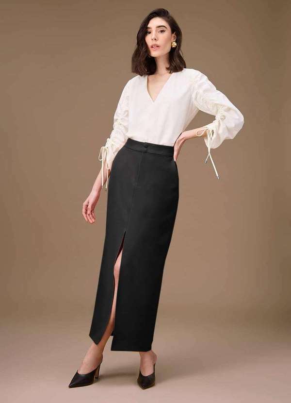 Maria.valentina - Saia Maria.Valentina Reta Alta Longa Preto Preto