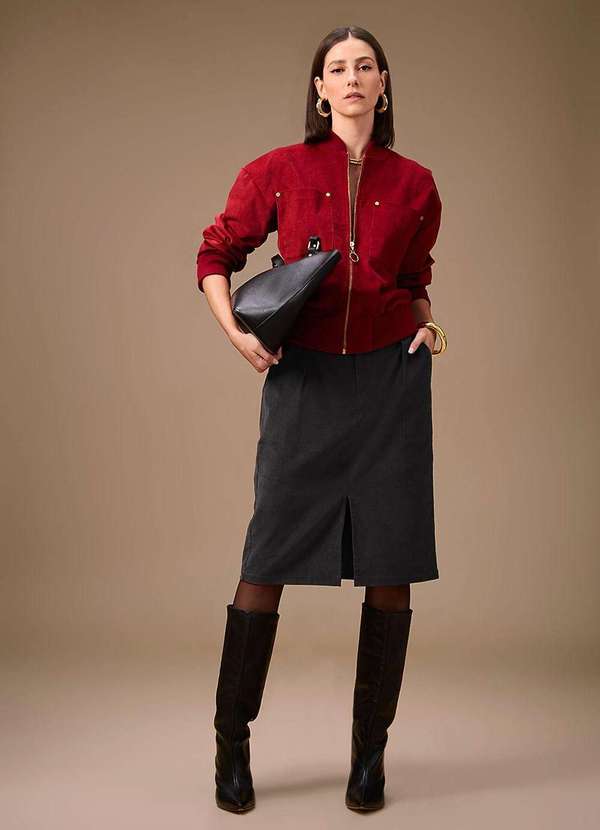 A saia preta de veludo midi com cintura alta é a escolha perfeita para a mulher sofisticada que valoriza o equilíbrio entre tradição e modernidade. Composta por algodão e elastano, garante conforto e caimento impecável. Ideal para eventos casuais ou jantares elegantes, combine com uma blusa de seda e salto fino para um visual que exala confiança e charme. A coleção Maria.Valentina inspira-se na arquitetura italiana, trazendo um toque de elegância atemporal ao seu guarda-roupa. Invista em uma peça que transforma o cotidiano em experiências inesquecíveis.