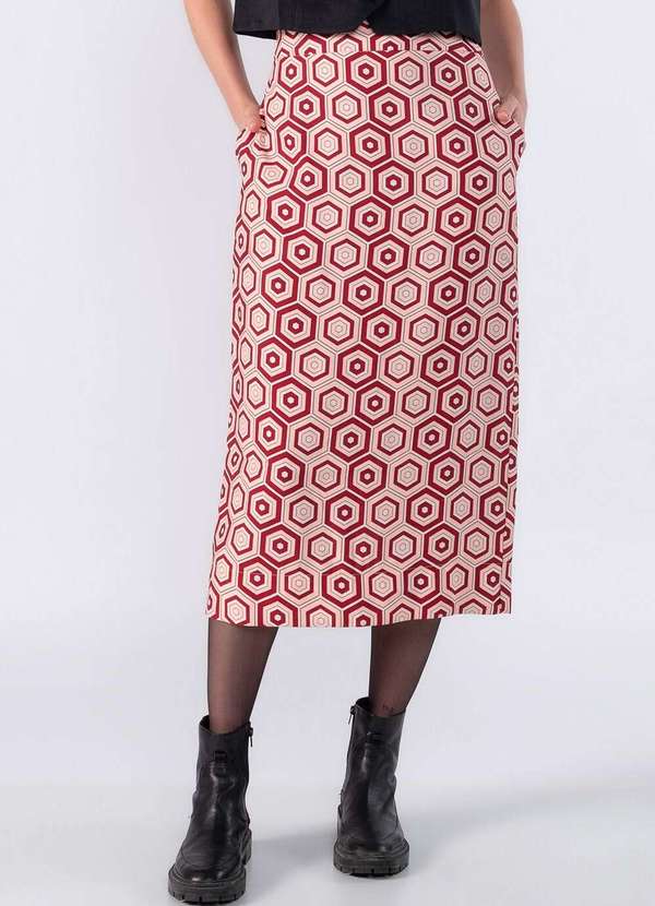 Lamis - Saia Midi Basica Estampa Geometrica Vermelho