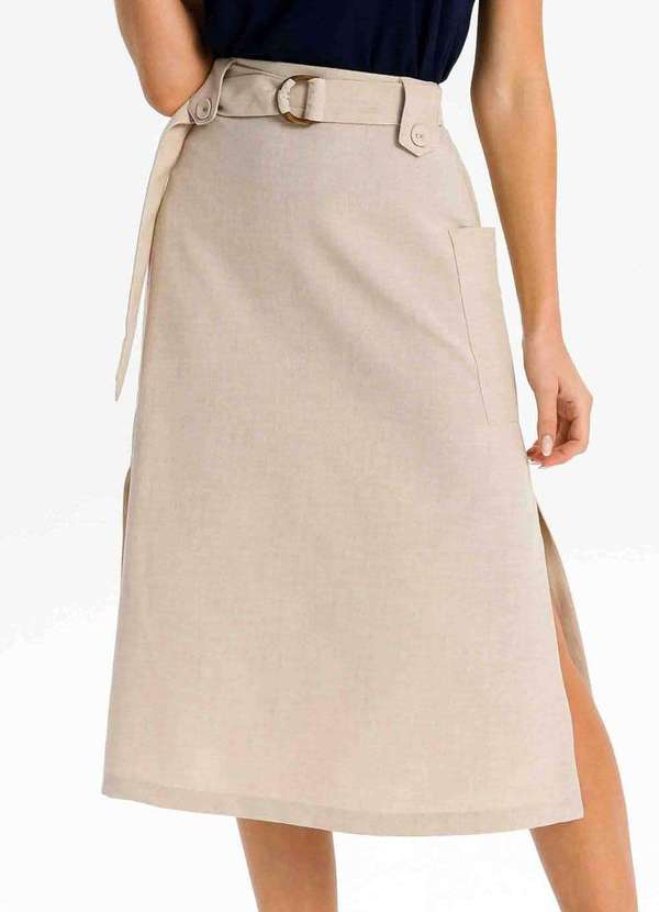 Pks - Saia Midi com Bolsos e Cinto Bege