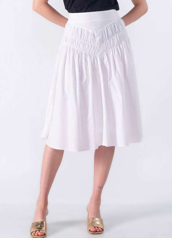 Lamis - Saia Midi com Pala Marcada e Franzido Branco