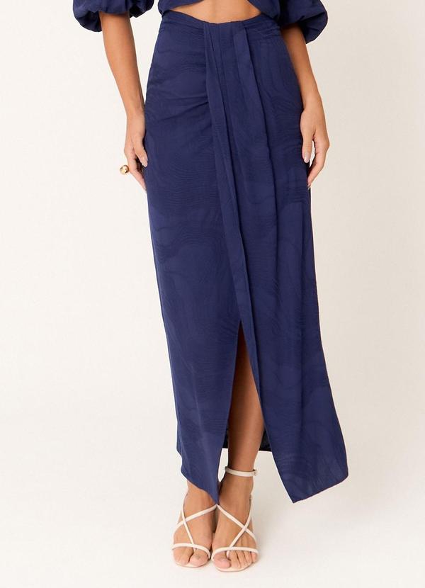 Carlota Costa - Saia Midi com Pregas Azul