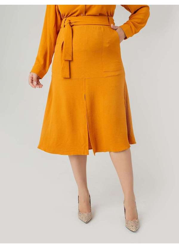Susie Modas - Saia Midi Crepe Heavy Flow Bolso Feminino Amarelo