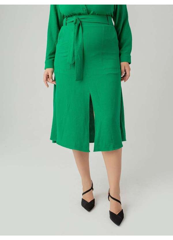 Susie Modas - Saia Midi Crepe Heavy Flow Bolso Feminino Verde