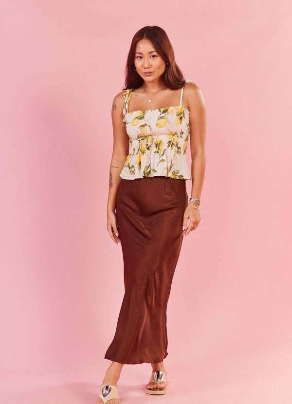 In Love - Saia Midi de Cetim Serena Marrom Marrom