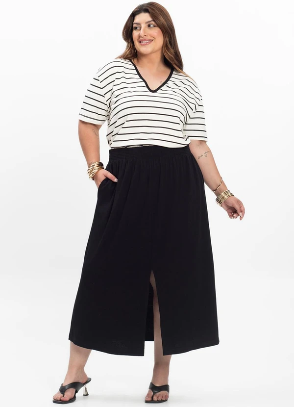 Secret Glam - Saia Midi Feminina Plus Size Preto