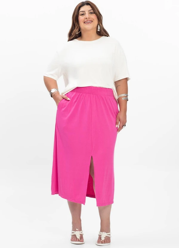 Secret Glam - Saia Midi Feminina Plus Size Rosa