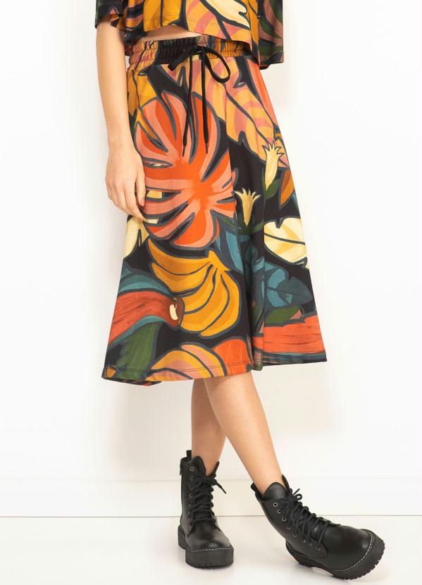 Farm - Saia Midi Godê Floresta Bold Preto