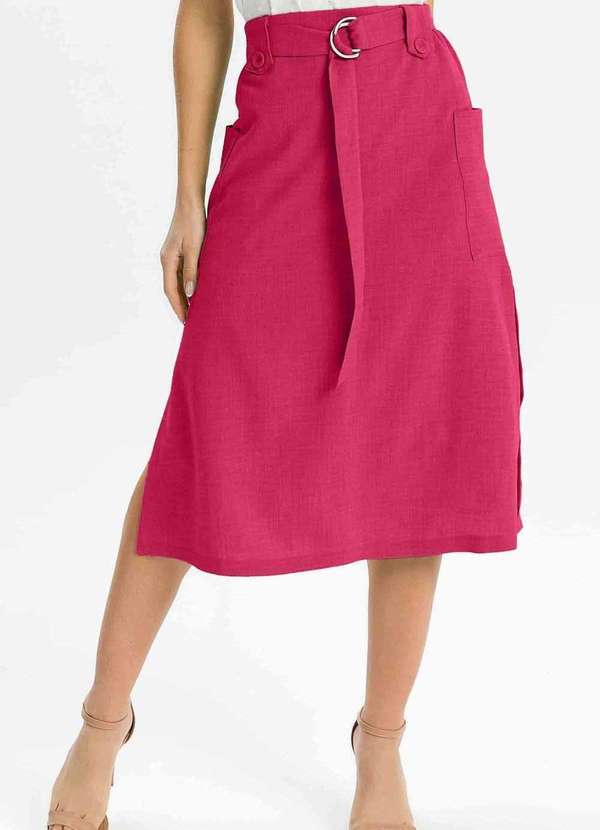 Pks - Saia Midi Pks com Bolsos e Cinto Rosa