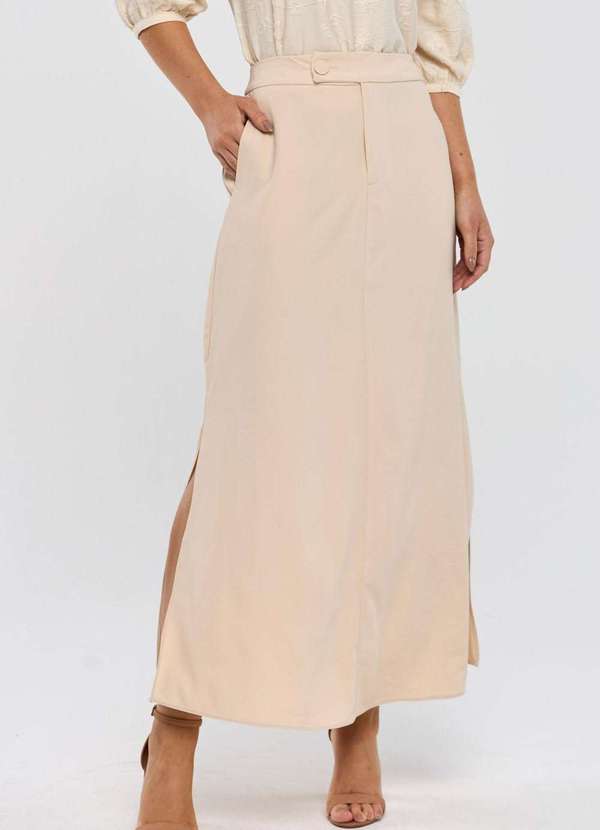 Pks - Saia Midi Pks com Fenda Lateral Bege