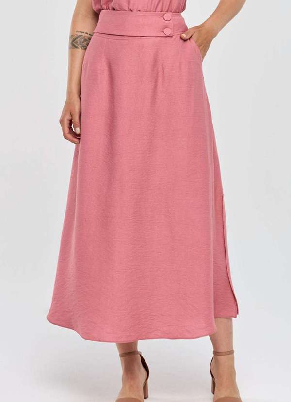 Pks - Saia Super Midi Pks Viscose Rosa