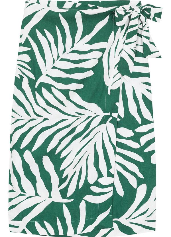Malwee - Saia Verde Mídi Folhagens com Pareô