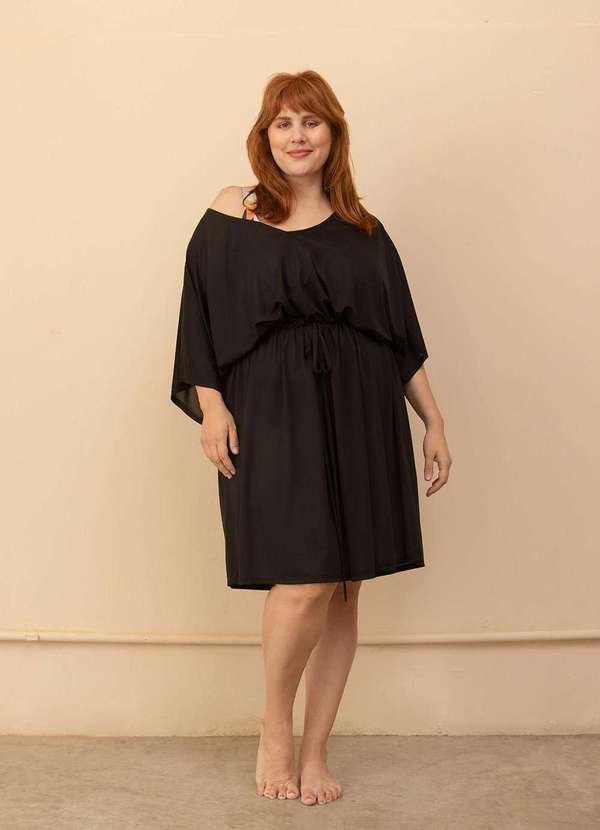 Bold Beach - Saída de Praia Amarração Malha Crepe Plus Size Preto