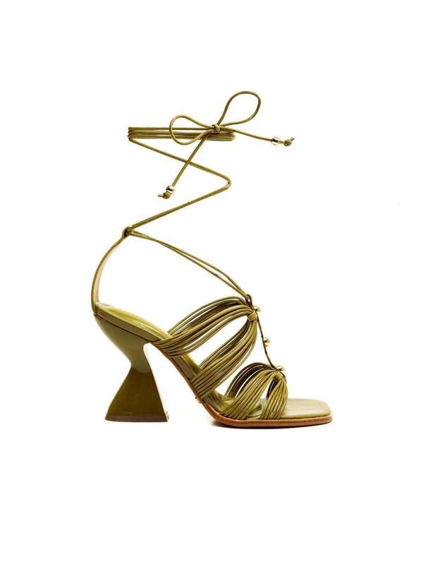 Elegante e cheia de personalidade, esta sandália em couro se destaca pelas delicadas tiras que se entrelaçam, criando uma estrutura sofisticada e envolvente. A amarração alta valoriza o tornozelo, enquanto o bico quadrado reforça sua modernidade. O salto alto escultural adiciona imponência ao design, enquanto os detalhes em laser e as semi-esferas cromadas garantem um toque de brilho refinado. Um modelo que equilibra delicadeza e ousadia, perfeito para composições marcantes. Características Material: Couro Torino Cor: Verde ( Pistache ) Altura do salto: 9,0cm .