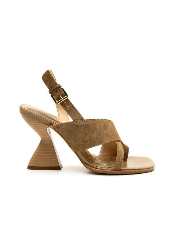 Sandália de salto alto confeccionada em couro com acabamento em camurça, combina sofisticação e personalidade. O design apresenta tiras largas que se cruzam de forma assimétrica sobre o peito do pé, conferindo modernidade à composição. O salto em formato escultural traz um toque de originalidade e elegância, enquanto a fivela ajustável no tornozelo garante melhor calce. Ideal para compor produções marcantes com charme e conforto. Características Material: Couro Cor: Nude ( hazelnut ) Altura do salto: 9,0cm .