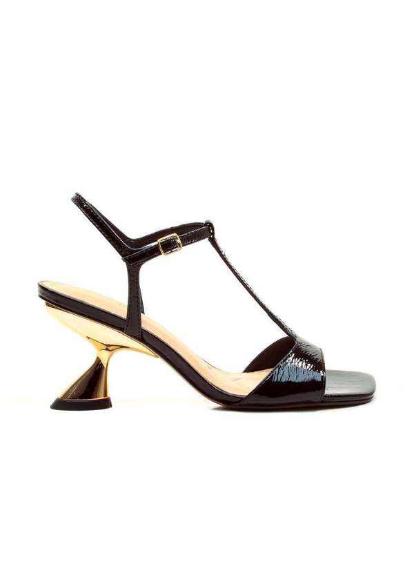 Sandália sofisticada confeccionada em couro, com design elegante e cheio de charme. O bico quadrado é combinado com uma gáspea larga, que apresenta uma delicada tira, unindo-se suavemente ao traseiro, que conta com ajuste perfeito por uma fivela refinada. O salto médio escultural, com acabamento cromado, adiciona um toque de sofisticação e modernidade ao modelo, tornando-o ideal para ocasiões que pedem estilo e conforto. Características Material: Couro ( Verniz Glossy ) Cor:Preto Altura do salto: 7,5cm .