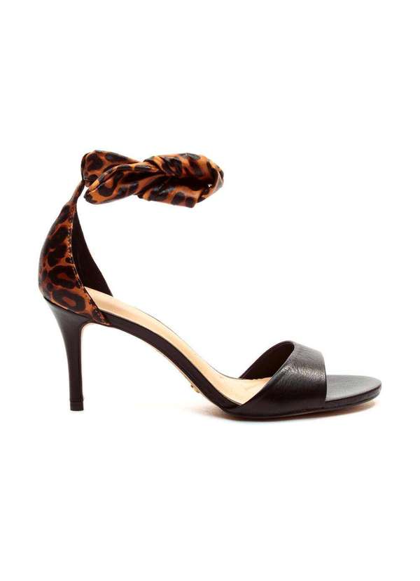 Uma sandália feminina sofisticada e cheia de personalidade, confeccionada em couro com estampa animal print, que confere um toque audacioso e moderno ao modelo. Seu design é complementado por um salto médio fino, proporcionando a combinação perfeita entre conforto e elegância. O traseiro fechado com amarração de tira, com efeito slouchy, adiciona um charme descontraído e contemporâneo, enquanto a opção de tira com fechamento e ajuste por fivela garante praticidade e um ajuste perfeito. O bico redondo proporciona conforto e suaviza o visual, tornando essa sandália ideal para quem busca um calçado estiloso, confortável e cheio de atitude para diversas ocasiões. Características Material: Couro Cor: Preto / Onça Altura do salto: 7,5cm .