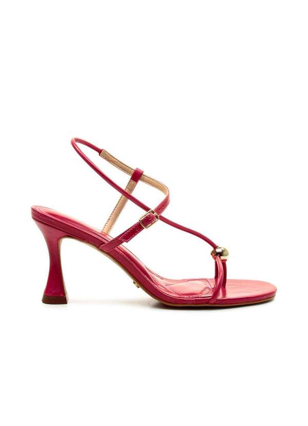 Com design clean e sofisticado, esta sandália de salto médio em couro é a definição de elegância atemporal. As tiras finas formam um desenho delicado no pé, enquanto a esfera metálica dourada no centro adiciona um ponto de brilho estratégico ¿ simples, porém marcante. O salto alto com base levemente escultural confere leveza e feminilidade à silhueta. Ideal para composições elegantes com vestidos fluidos, alfaiataria refinada ou até mesmo jeans em produções sofisticadas e descomplicadas. Características Material: Couro Cor: Vermelho ( Fuoco ) Altura do salto: 7,5cm .