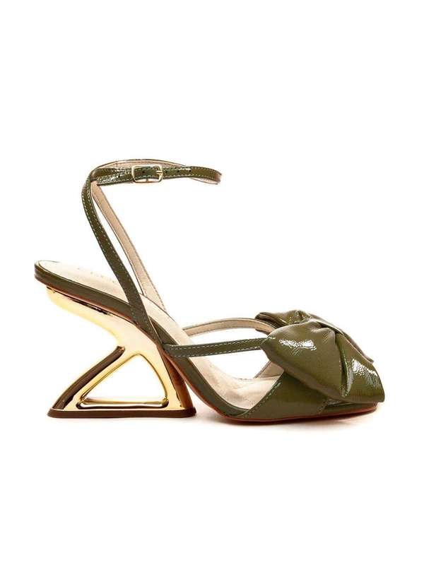 Uma sandália feminina sofisticada e cheia de personalidade, confeccionada em couro verniz glossy de alta qualidade, que traz um toque de brilho texturizado. Seu design inovador conta com um salto alto escultural e vazado, que confere um ar contemporâneo e único ao modelo. O traseiro com fechamento e ajuste por fivela garante praticidade e segurança, enquanto o bico quadrado proporciona conforto e uma silhueta moderna. O adorno de um laço pomposo adiciona um toque de esplendor, completando a sandália com um charme especial. Perfeita para ocasiões que pedem estilo, elegância e sofisticação. Características Material: Couro Destroyer Cor: Verde ( Mint ) Altura do salto: 9.0cm .