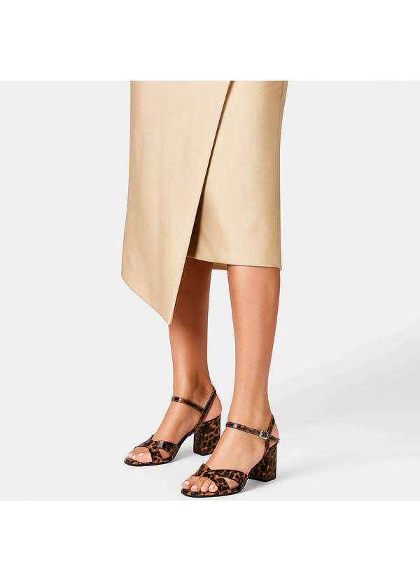 Comfort - Sandália Couro Salto Bloco Verniz Onça Onca
