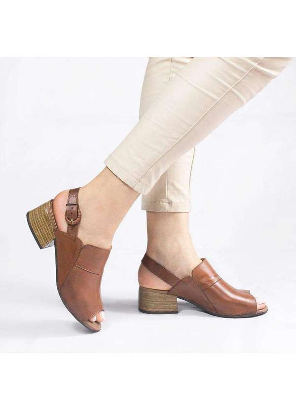 Zatta Calcados - Sandalia de Couro Salto Bloco Eva Marrom