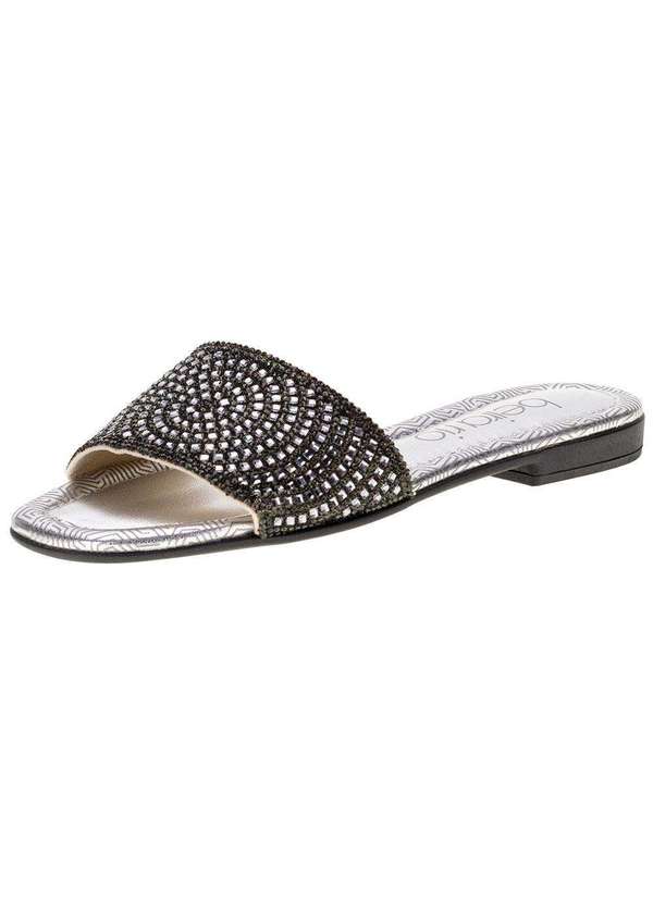 Beira Rio - Sandália Feminina Rasteira Beira Rio - 8497103 - Cinza/Preto