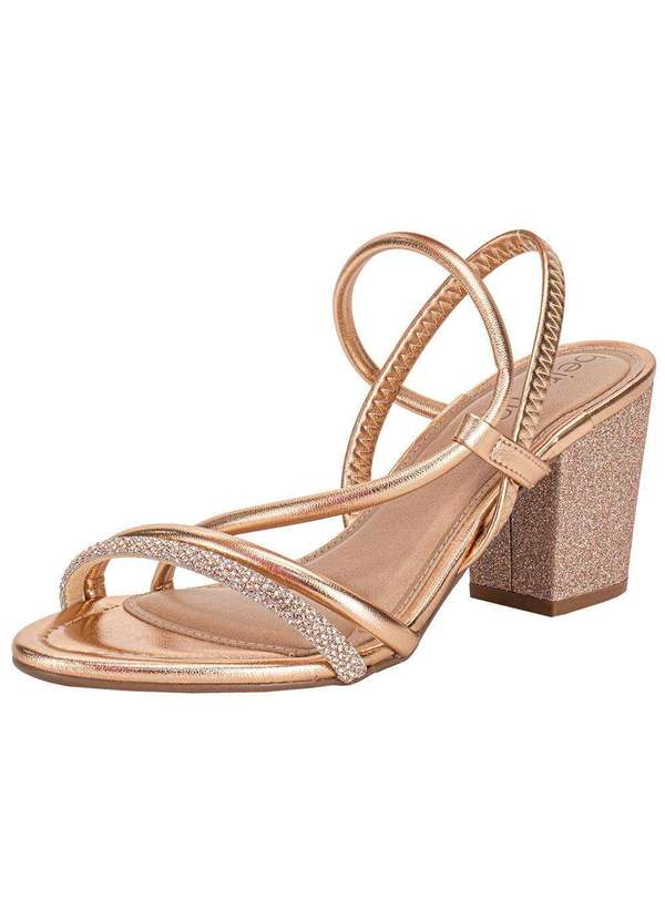 Beira Rio - Sandália Feminina Salto Grosso Beira Rio 8280786 - Ouro/Rosado