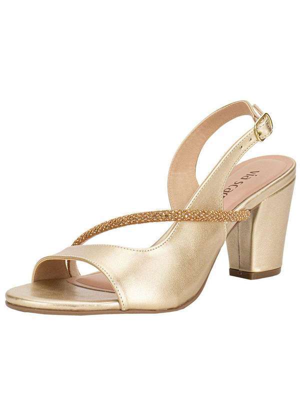 Via Scarpa - Sandália Feminina Salto Grosso Via Scarpa 178018952 - Ouro