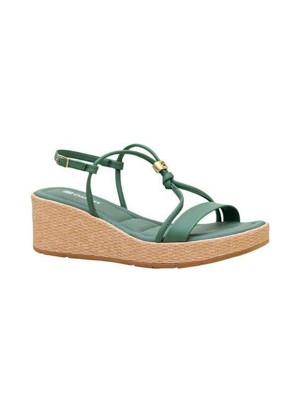 Comfort - Sandália Feminino Nó Central Salto Anabela Comfort Folha
