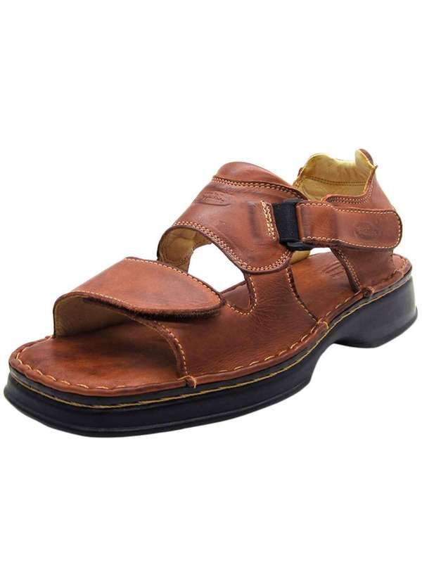 DETALHES : Sandália Masculina Anti-Stress Pinhão Duplo Sentido, confeccionada em couro. Forro em couro, palmilha macia e solado de borracha. Fechamento por